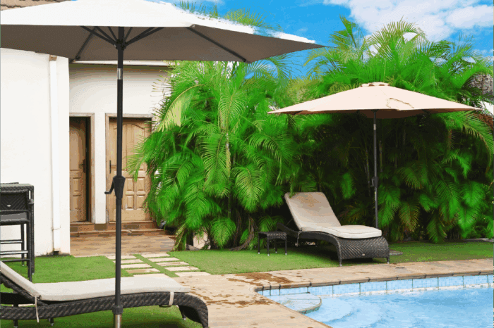 Leisure & Relaxation by the sparkling swimming pool and landscaped gardens.